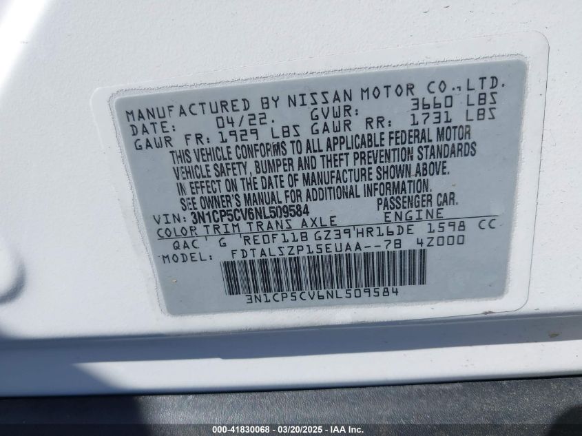 2022 NISSAN KICKS 2022 року Бензин, 1.6, Передний привод, vin - 3N1CP5CV6NL****** из США