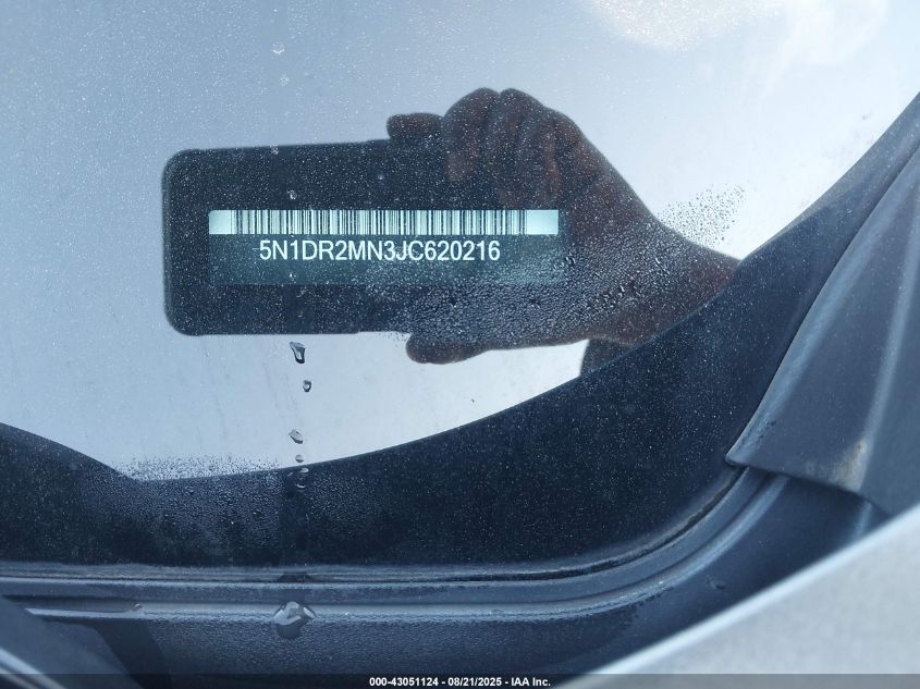 Цвет СерыйЦилиндры 6Привод Передний приводVIN 5N1DR2MN3JC620216Состояние Заводится и едет (проверено)Повреждения Передняя леваяДата аукциона 2025-12-05 AutoRIA