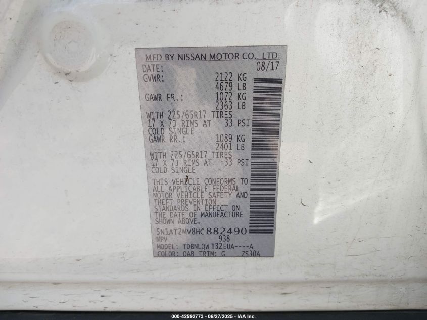 2017 NISSAN ROGUE 2017 року Бензин, 2.5, Полный привод, vin - 5N1AT2MV8HC****** из США