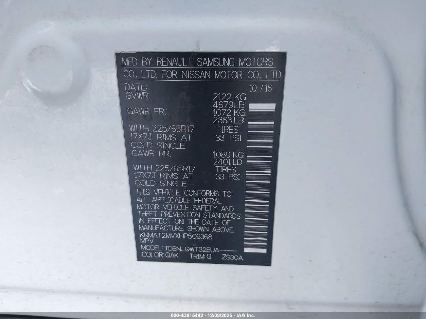 2017 NISSAN ROGUE 2017 року Бензин, 2.5, Полный привод, vin - KNMAT2MVXHP506368 из США