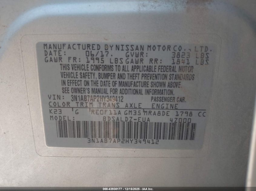 2017 NISSAN SENTRA S