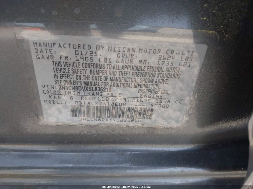 2025 NISSAN VERSA 2025 року Бензин, 1.6, Передний привод, vin - 3N1CN8DVXSL****** из США
