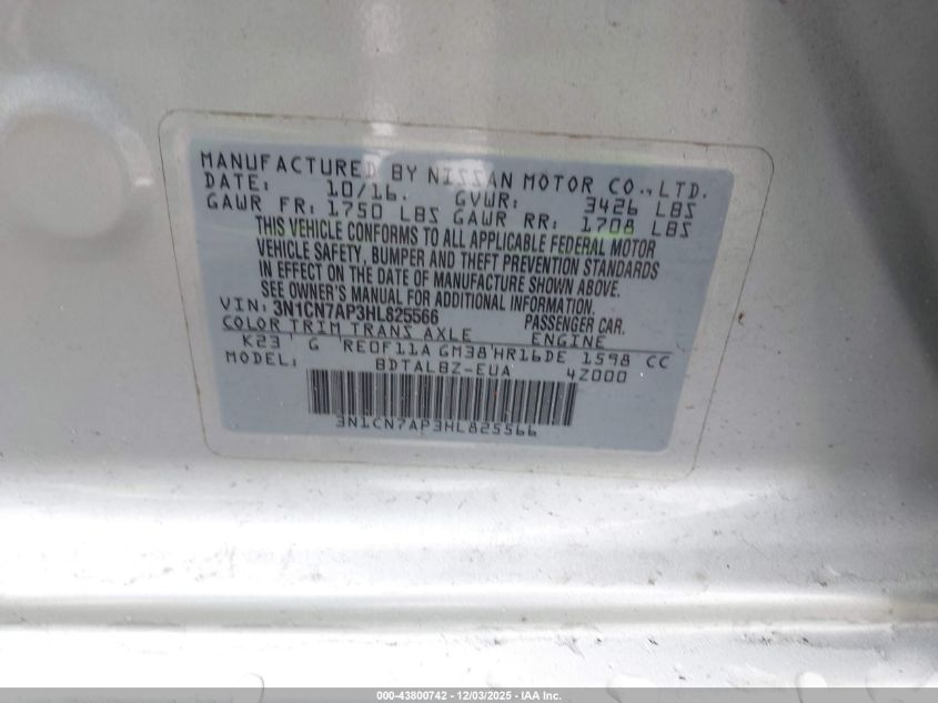 2017 NISSAN VERSA S