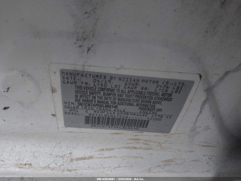2019 NISSAN VERSA S