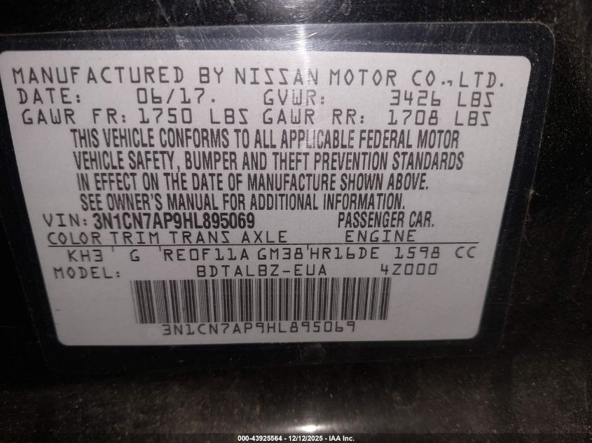 2017 NISSAN VERSA S