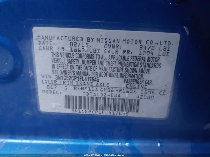 2015 NISSAN VERSA NOTE S