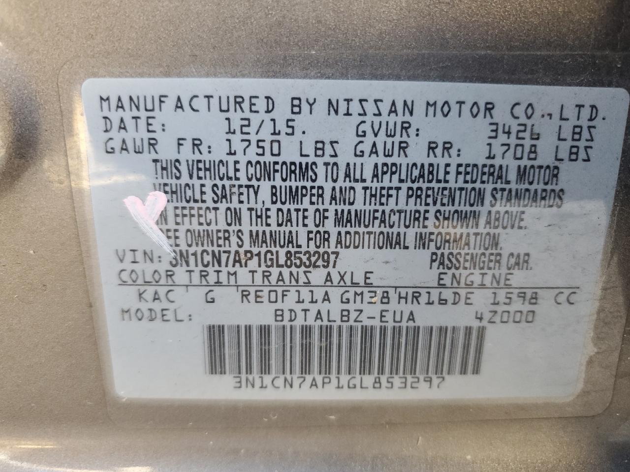 Цвет СерыйЦилиндры 4VIN 3N1CN7AP1GL853297Состояние НеизвестноПовреждения Задняя AutoRIA