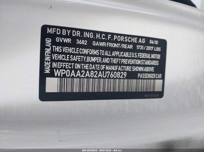 2010 PORSCHE CAYMAN S