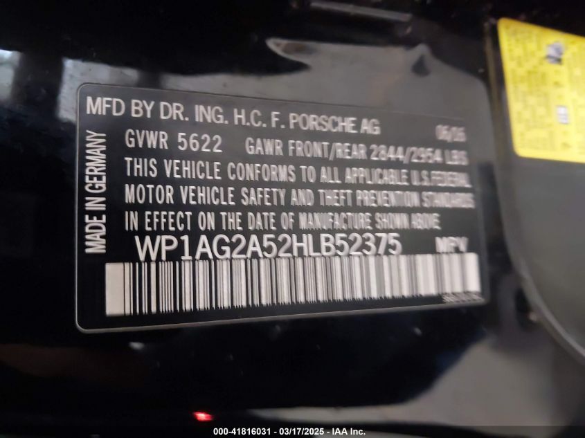 Цвет ЧерныйЦилиндры 6Привод Полный приводVIN WP1AG2A52HL******Состояние НеизвестноПовреждения Левая сторонаДата аукциона 2025-06-30