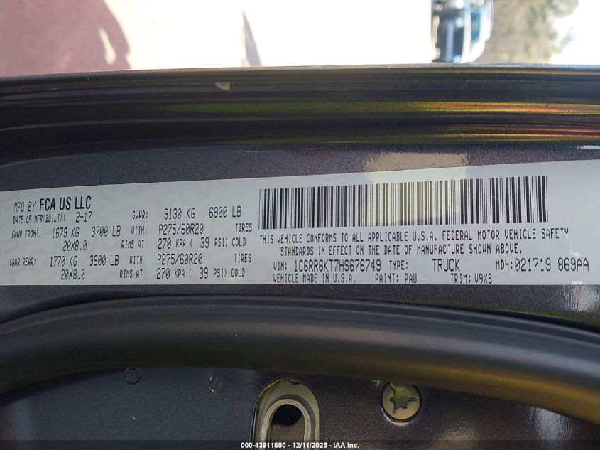 2017 RAM 1500 2017 року Бензин, 5.7, , vin - 1C6RR6KT7HS676749 из США