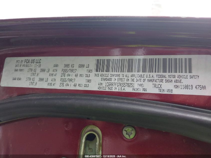 Цвет Цилиндры 6Привод Полный приводVIN 1C6RR7FG7KS578251Состояние НеизвестноПовреждения Передняя или задняя AutoRIA