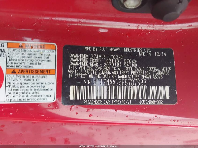 2015 SCION FR-S 2015 року Бензин, 2.0, Задний привод, vin - JF1ZNAA16F8****** из США