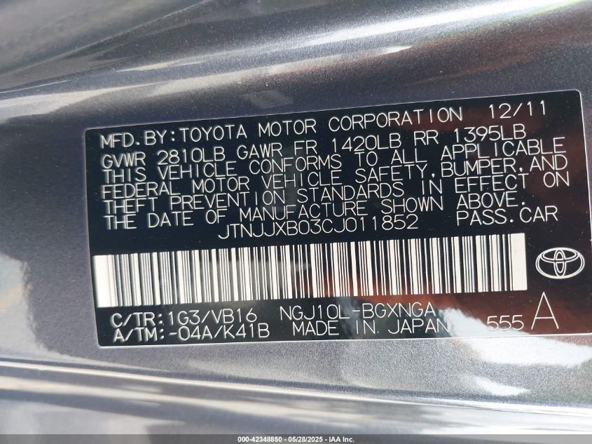Цвет СерыйЦилиндры 4Привод Передний приводVIN JTNJJXB03CJ******Состояние НеизвестноПовреждения Передняя или задняяДата аукциона 2025-06-10
