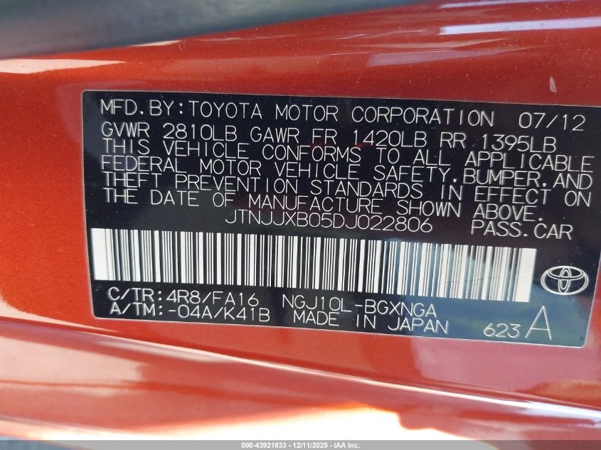 2013 SCION IQ 2013 року Бензин, 1.3, Передний привод, vin - JTNJJXB05DJ022806 из США