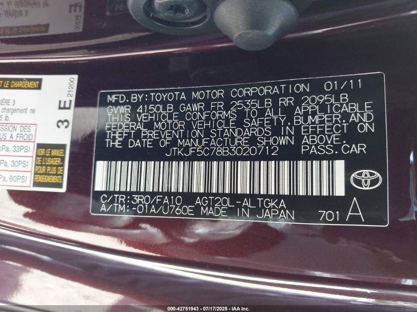 Цвет ФиолетовыйЦилиндры 4Привод Передний приводVIN JTKJF5C78B3******Состояние НеизвестноПовреждения Передняя и задняя