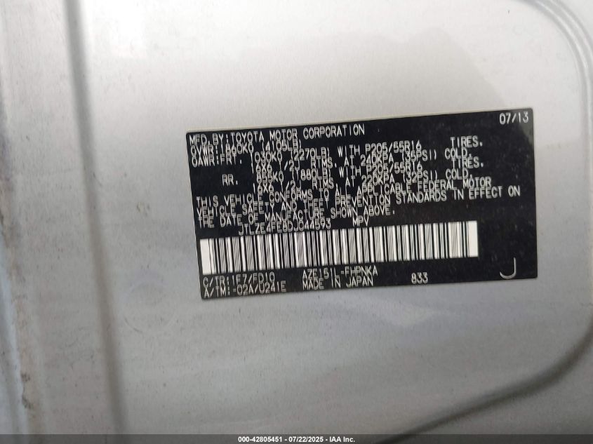 Цвет СеребряныйЦилиндры 4Привод Передний приводVIN JTLZE4FE8DJ******Состояние НеизвестноПовреждения Передняя или задняяДата аукциона 2025-08-27