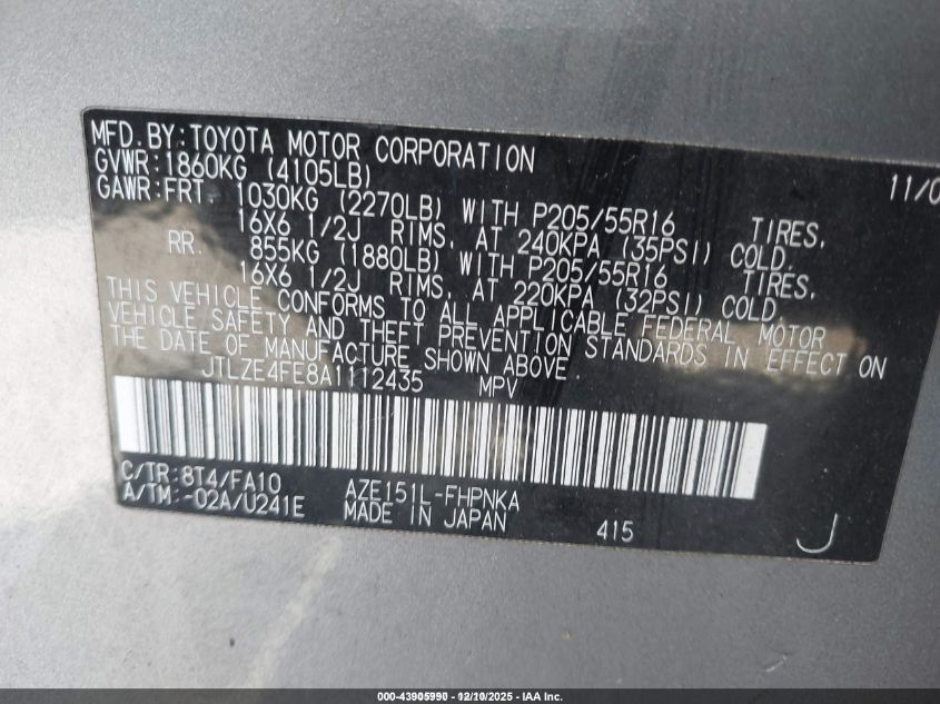 Цвет СеребряныйЦилиндры 4Привод Передний приводVIN JTLZE4FE8A1112435Состояние СтационарноПовреждения Правая сторона