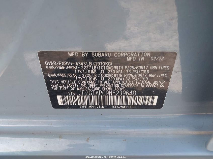 2022 SUBARU CROSSTREK SPORT