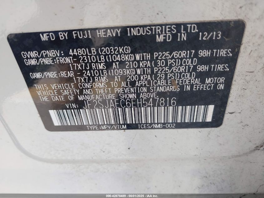 Цвет БелыйЦилиндры 4Привод Полный приводVIN JF2SJAEC6EH******Состояние НеизвестноПовреждения Передняя или задняяДата аукциона 2025-09-02