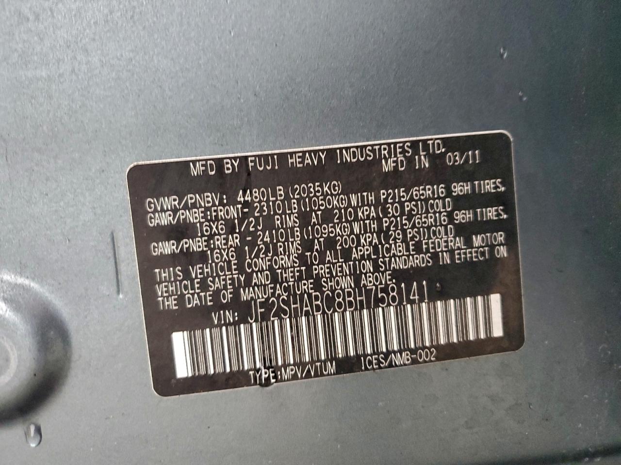 Цвет БирюзовийЦилиндры 4Привод Полный приводVIN JF2SHABC8BH758141Состояние Заводится и едет (проверено)Повреждения ЗадняяДата аукциона 2025-12-05 AutoRIA