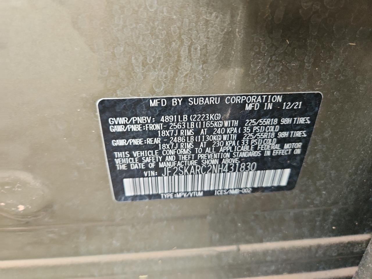 Цвет ЗеленыйЦилиндры 4Привод Полный приводVIN JF2SKARC2NH431830Состояние НеизвестноПовреждения ВодаДата аукциона 2025-08-20