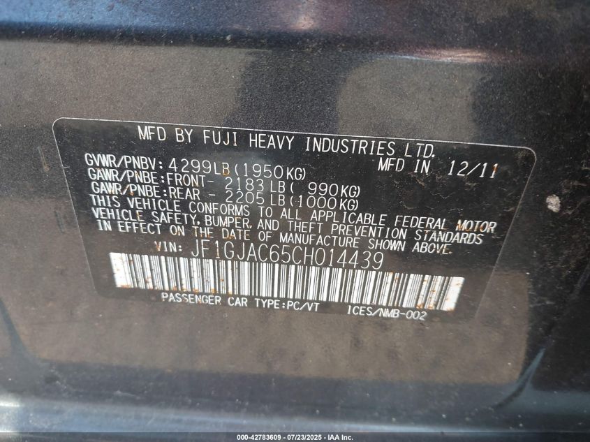 2012 SUBARU IMPREZA 2012 року Бензин, 2.0, Полный привод, vin - JF1GJAC65CH****** из США