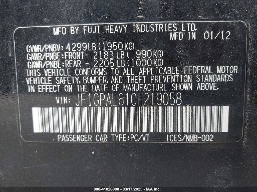 2012 SUBARU IMPREZA 2012 року Бензин, 2.0, Полный привод, vin - JF1GPAL61CH****** из США