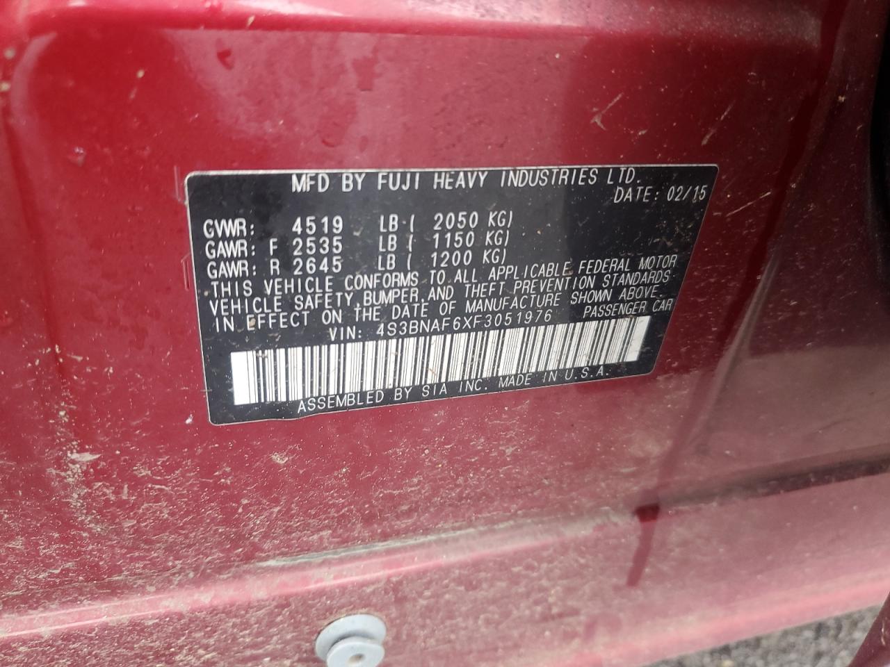 2015 SUBARU LEGACY 2.5I LIMITED