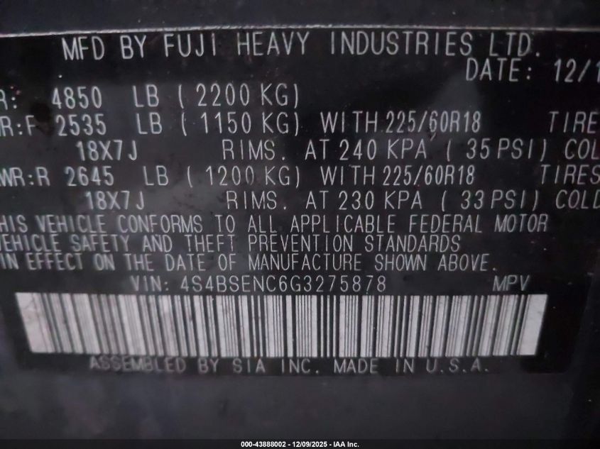 Цвет СерыйЦилиндры 6Привод Полный приводVIN 4S4BSENC6G3275878Состояние СтационарноПовреждения Передняя и задняя AutoRIA