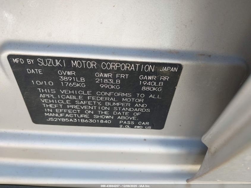 2011 SUZUKI SX4 2011 року Бензин, 2.0, Полный привод, vin - JS2YB5A31B6301840 из США