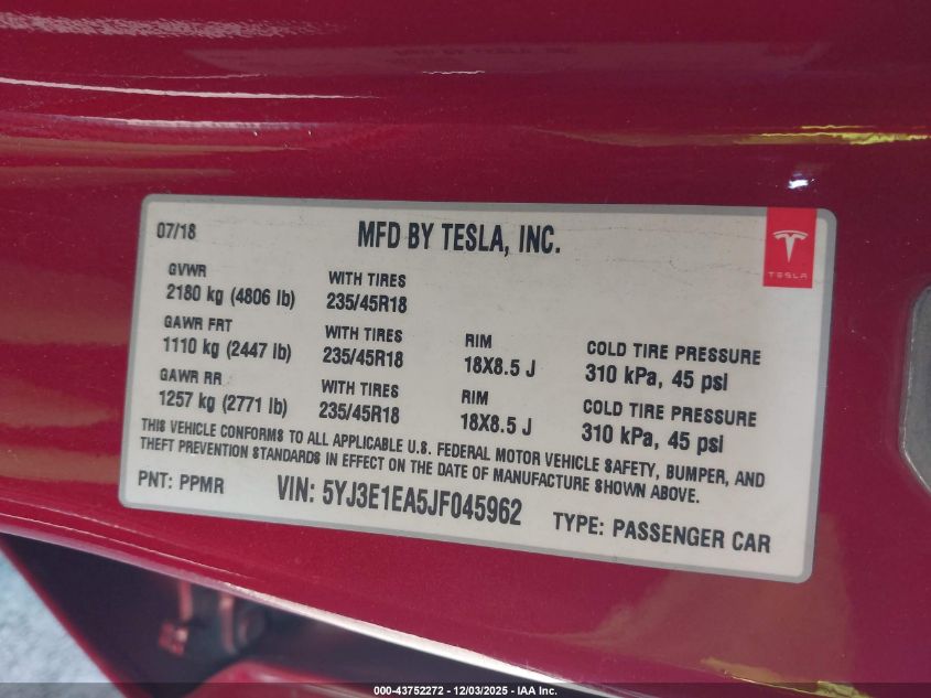 2018 TESLA MODEL 3