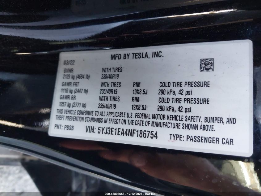 2022 TESLA MODEL 3