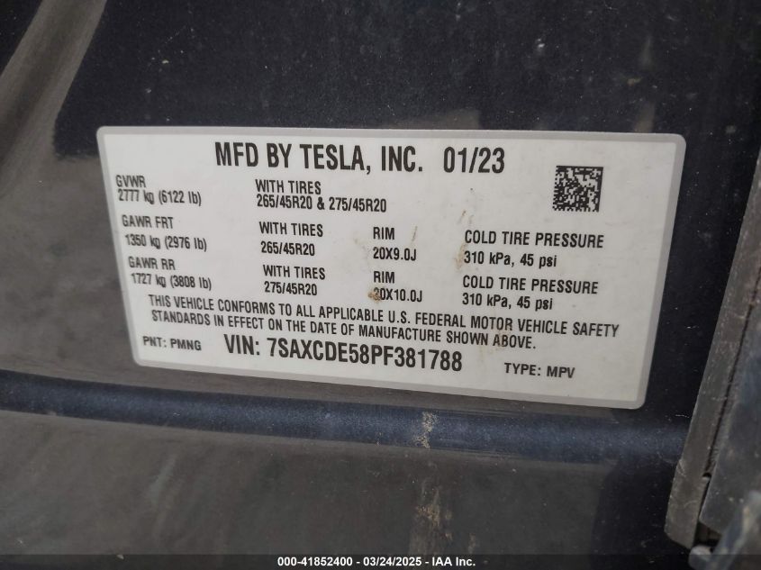 2023 TESLA MODEL X 2023 року Электрический, U, Полный привод, vin - 7SAXCDE58PF****** из США