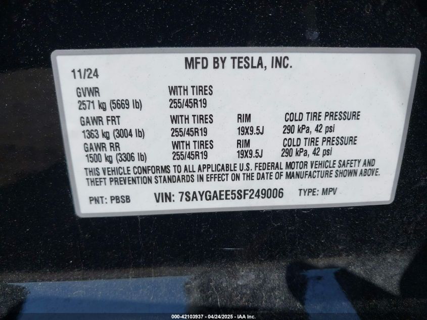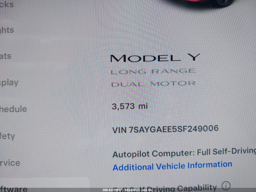 2025 TESLA MODEL Y 2025 року Электрический, U, Полный привод, vin - 7SAYGAEE5SF249006 из США