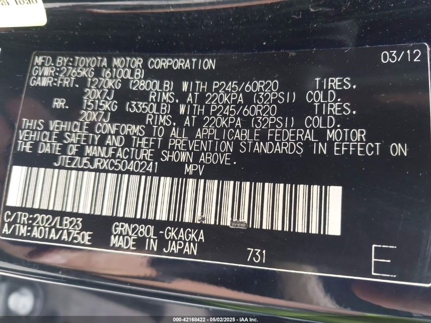 2012 TOYOTA 4RUNNER SR5