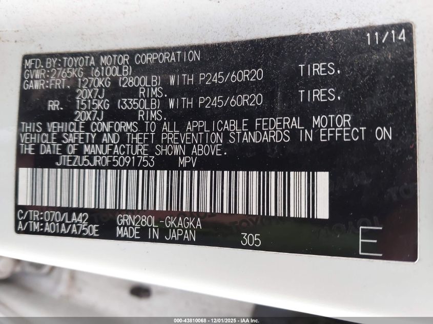 2015 TOYOTA 4RUNNER SR5/SR5 PREMIUM
