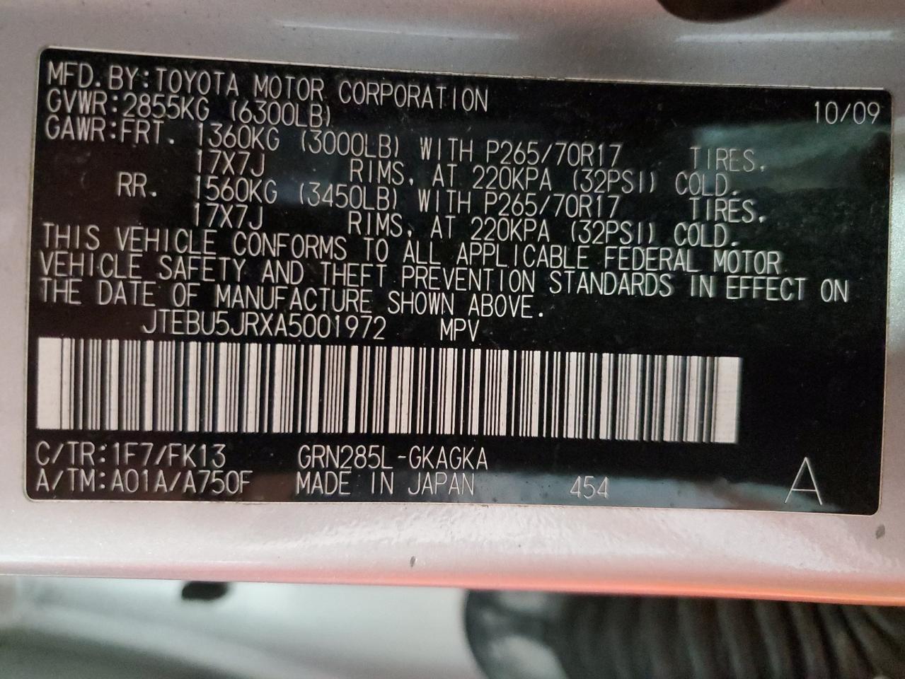 Цвет СеребряныйЦилиндры 6Привод Полный приводVIN JTEBU5JRXA5001972Состояние Заводится и едет (проверено)Повреждения НезначительныеДата аукциона 2025-07-03