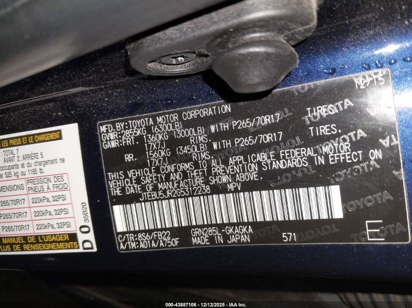 Цвет СинийЦилиндры 6Привод Полный приводVIN JTEBU5JR2G5312238Состояние Заводится и едет (проверено)Повреждения Передняя или задняя AutoRIA