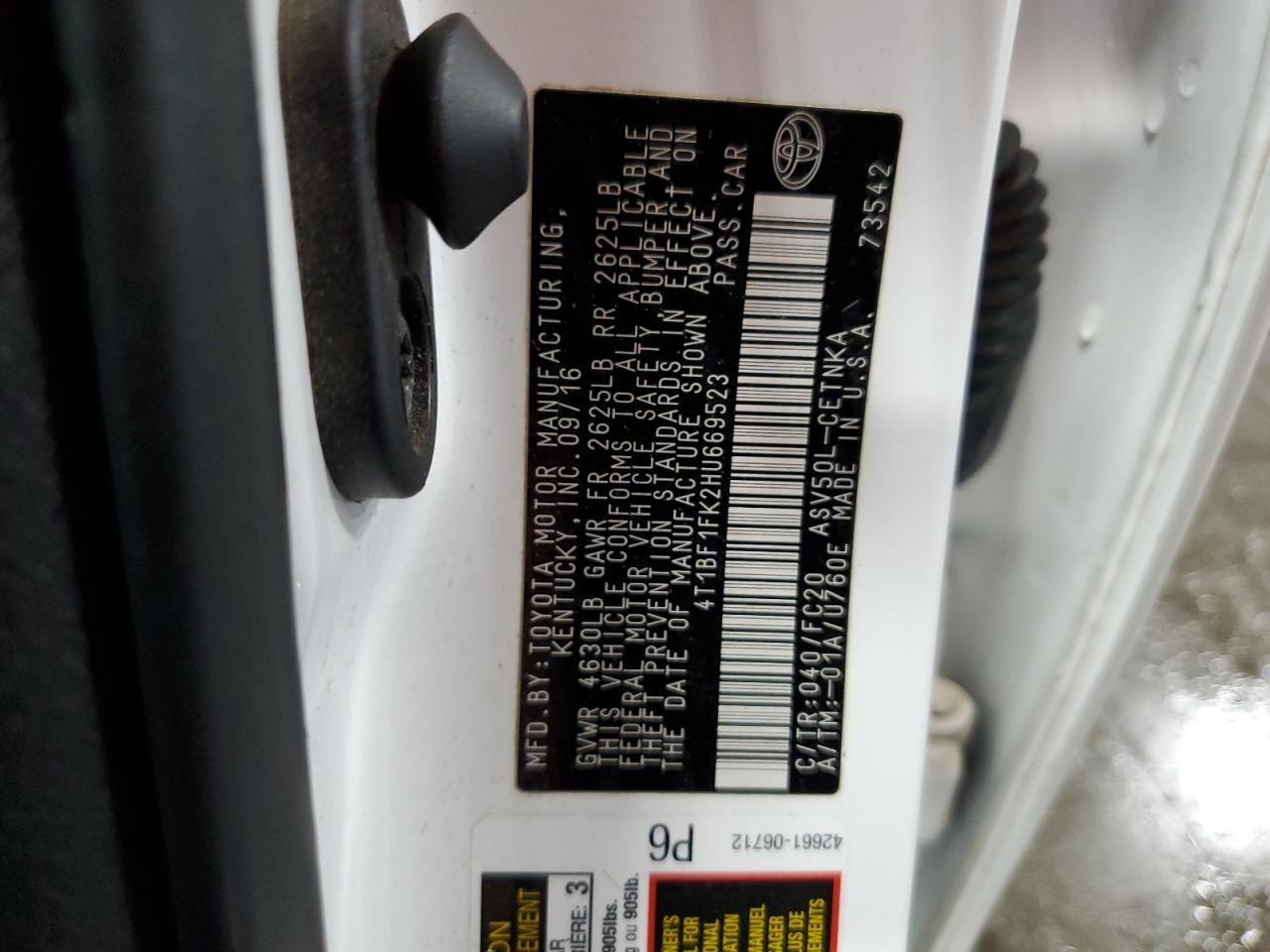 Цвет БелыйЦилиндры 4VIN 4T1BF1FK2HU669523Состояние Заводится и едет (проверено)Повреждения Передняя или задняяДата аукциона 2025-08-19