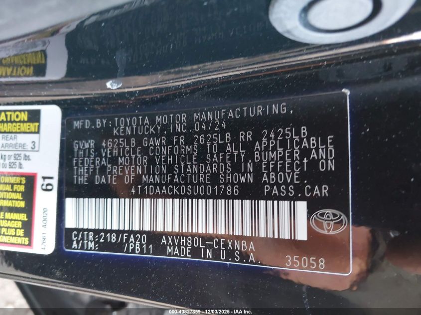 2025 TOYOTA CAMRY 2025 року Гибрид, 2.5, Передний привод, vin - 4T1DAACK0SU001786 из США