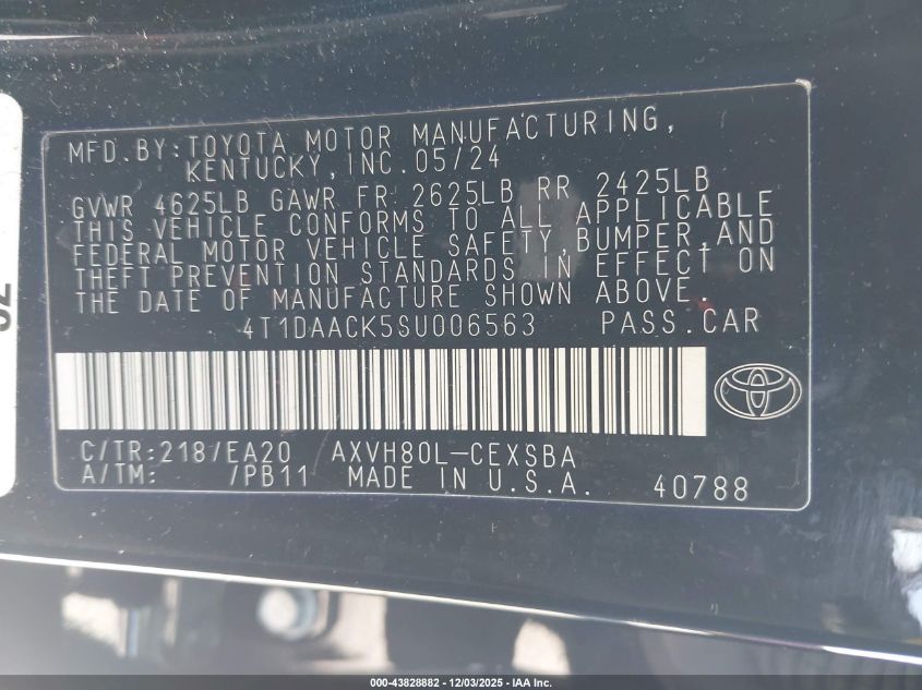 2025 TOYOTA CAMRY 2025 року Гибрид, 2.5, Передний привод, vin - 4T1DAACK5SU006563 из США