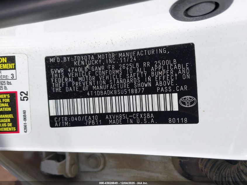 2025 TOYOTA CAMRY 2025 року Гибрид, 2.5, Полный привод, vin - 4T1DBADK8SU518877 из США