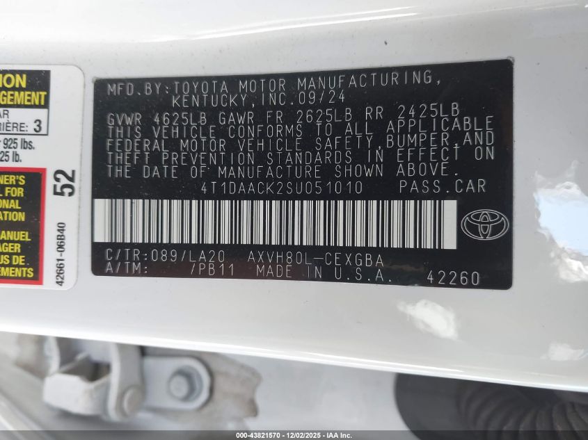 2025 TOYOTA CAMRY 2025 року Гибрид, 2.5, Передний привод, vin - 4T1DAACK2SU051010 из США