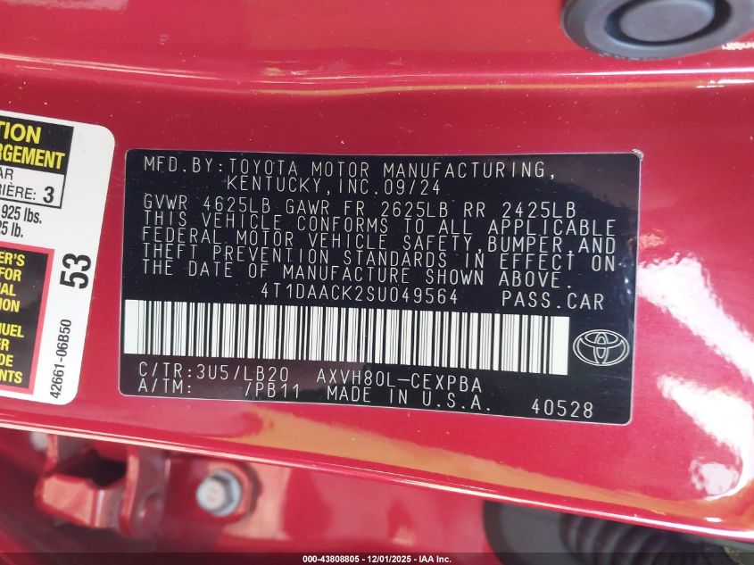 2025 TOYOTA CAMRY 2025 року Гибрид, 2.5, Передний привод, vin - 4T1DAACK2SU049564 из США