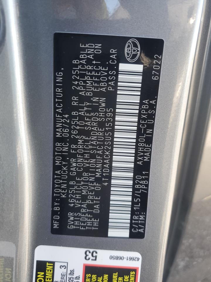 2025 TOYOTA CAMRY 2025 року Гибрид, 2.5, , vin - 4T1DAACK2SU515395 из США