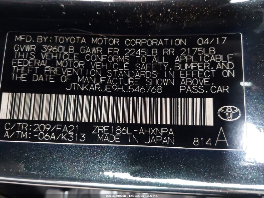 2017 TOYOTA COROLLA L