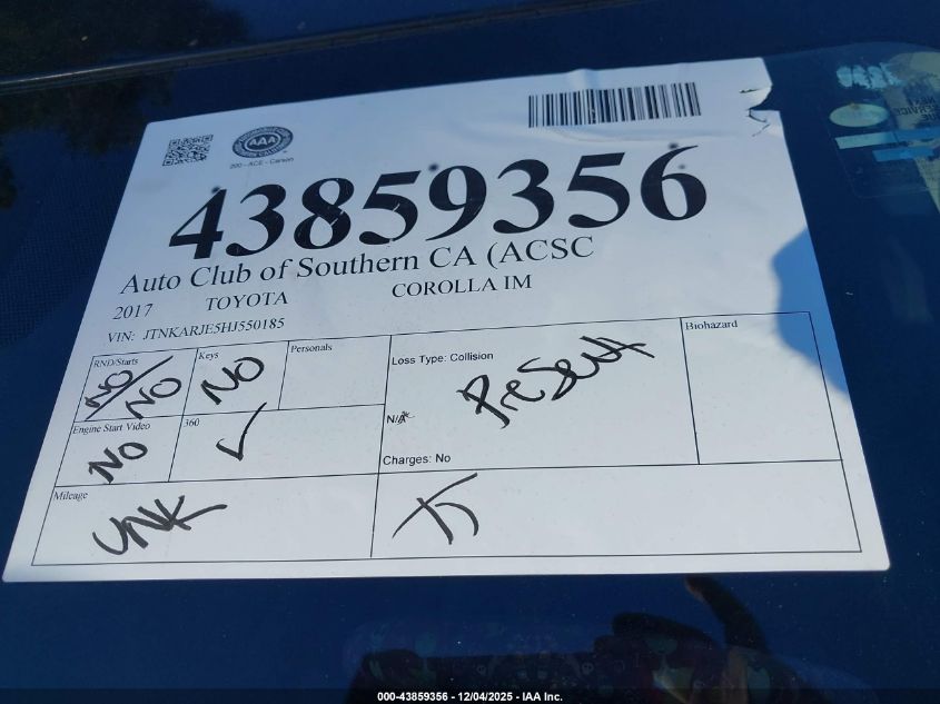 2017 TOYOTA COROLLA 2017 року Бензин, 1.8, Передний привод, vin - JTNKARJE5HJ550185 из США