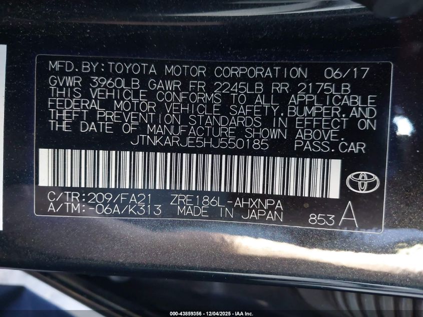 2017 TOYOTA COROLLA L
