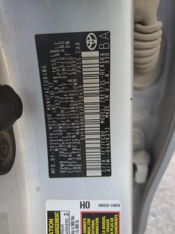 2018 TOYOTA COROLLA 2018 року Бензин, 1.8, , vin - 5YFBURHE0JP758459 из США