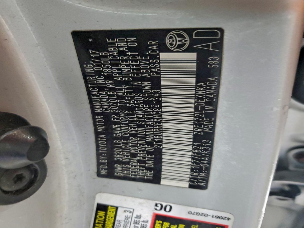 2017 TOYOTA COROLLA L